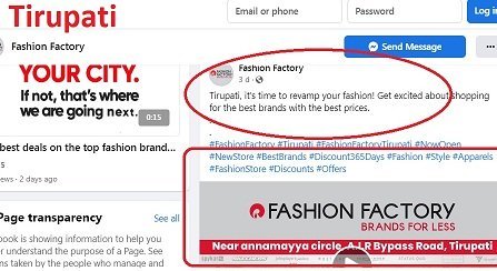 Social Media Details of Fashion Factory Reliance Tirupti store